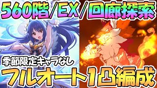 7月ルナの塔560階/EX/回廊探索フルオート1凸攻略編成紹介!季節限定キャラなし